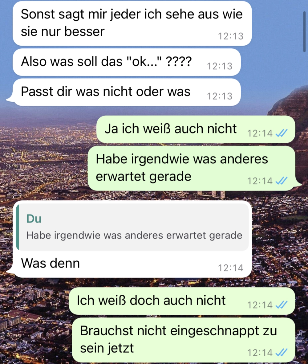 Also nicht wirklich anders, aber er hat etwas anderes erwartet. Sie kann niemals 21 Jahre alt sein, oder? Das würde bedeuten, dass sie die ganze Zeit gelogen hätte 😮