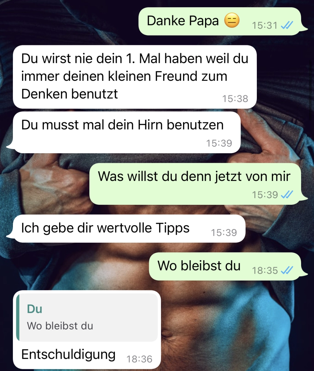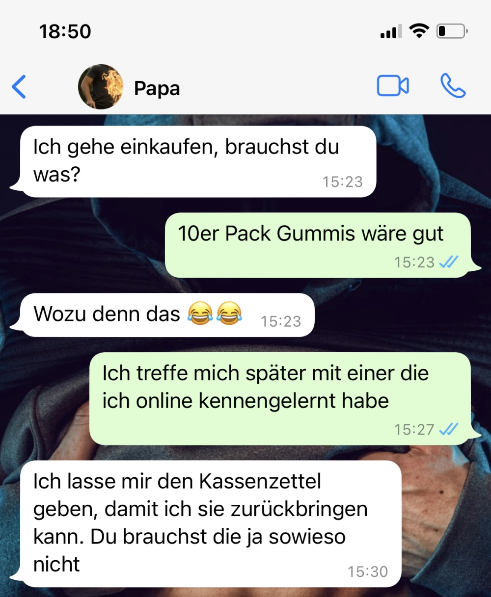 Er hat es nicht so leicht mit seinem Sohn. Er hat wohl verpasst, dass er auch mal auf eigenen Füßen stehen muss. Aber besser er lernt es spät, als nie. Dieser Tag kommt für jeden irgendwann mal. 😂